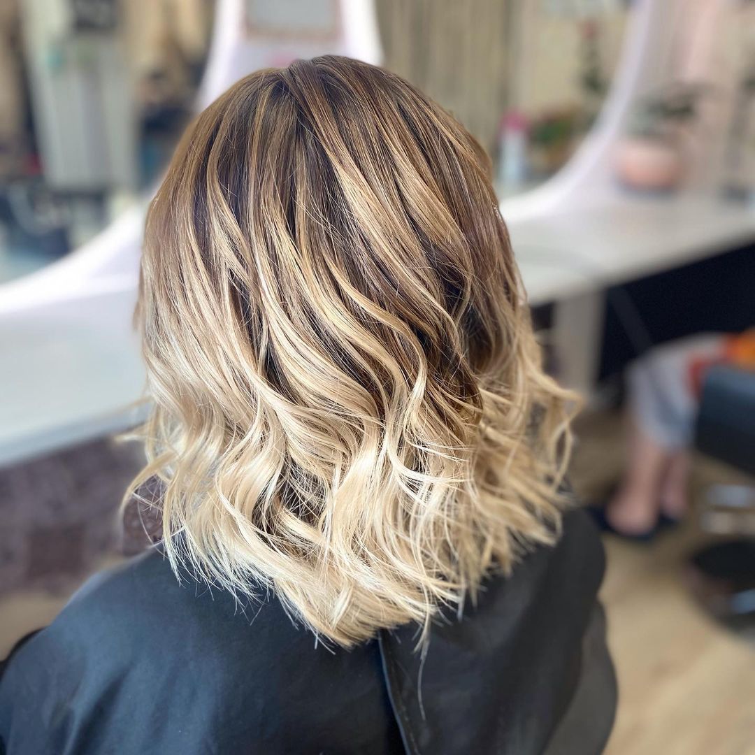 In foto, abbiamo delle meravigliose meches bionde realizzate su una base già chiara, in questo caso si tratta di un biondo cenere. Le meches invece variano tra un biondo oro sulle lunghezze per arrivare ad un biondo platino sulle punte. Il taglio è un caschetto corto e pari. Chiude in bellezza uno styling mosso che dona maggior volume al look.