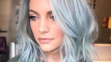 Capelli pastello bianco azzurri con uno styling mosso leggermente morbido
