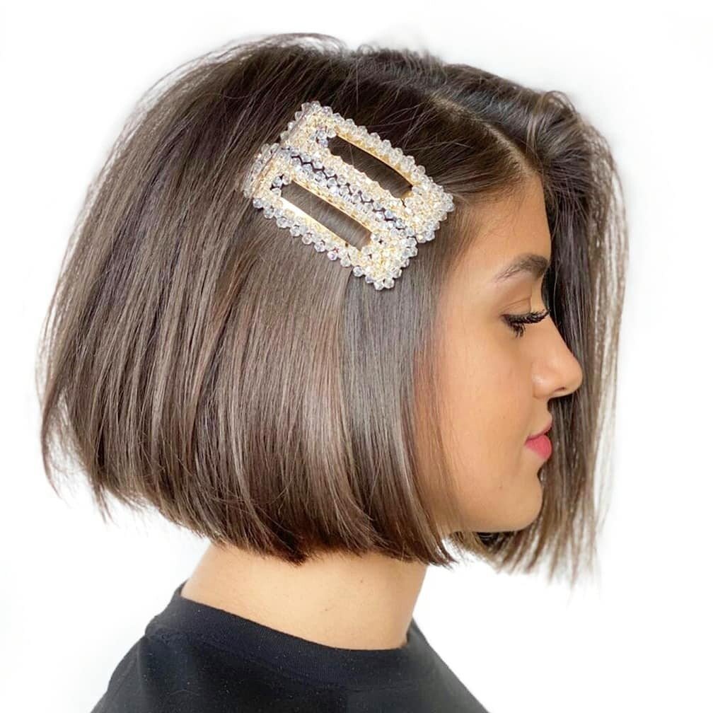 Taglio medio corto con molletta come accessorio, per chi vuole un look fashion e chic